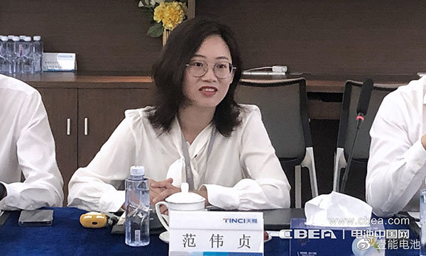 图为天赐新能源材料研发平台部长范伟贞参与座谈交流