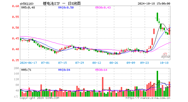 流动性方面,截止10月18日,锂电池ETF(561160)近20个交易日累计成交金额6.84亿元,日均成交金额3418.03万元;今年以来,190个交易日,累计成交金额48.60亿元,日均成交金额2558.11万元。