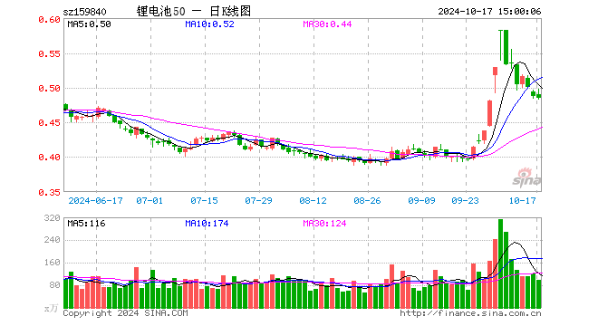 规模方面,截止10月16日,锂电池ETF(159840)最新份额为19.53亿份,最新规模为9.53亿元。回顾2023年12月29日,锂电池ETF(159840)份额为24.88亿份,规模为12.05亿元。即该基金今年以来份额减少21.51%,规模减少20.87%。