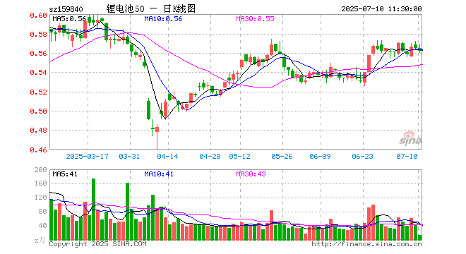 7月10日,截止午间收盘,锂电池ETF(159840)跌0.53%,报0.562元,成交额787.47万元。锂电池ETF(159840)重仓股方面,比亚迪截止午盘跌2.12%,宁德时代跌0.30%,亿纬锂能跌0.47%,三花智控跌0.39%,华友钴业跌1.30%,赣锋锂业跌0.17%,格林美涨0.00%,欣旺达跌0.87%,国轩高科跌0.67%,先导智能涨1.46%。