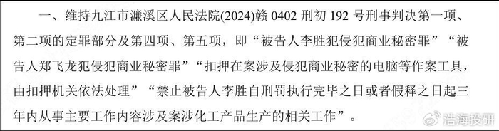 9月16日,公司发布收到《刑事判决书》的公告。根据公告,公司原员工为获取非法利益,违反保密义务,将公司技术对外泄露。根据终审判决,前员工已被定罪量刑。虽然目前未对公司业务造成实质影响,但秘密一旦泄露,便是覆水难收,未来是否会对公司业务产生影响无法预期。