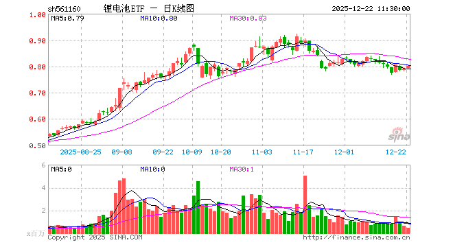 12月22日,截止午间收盘,锂电池ETF(561160)涨1.39%,报0.801元,成交额3765.14万元。锂电池ETF(561160)重仓股方面,阳光电源截止午盘涨0.71%,宁德时代跌0.91%,亿纬锂能涨0.44%,三花智控涨2.30%,先导智能涨2.16%,天赐材料涨2.66%,国轩高科涨1.32%,欣旺达涨2.74%,格林美涨3.43%,科达利跌0.67%。