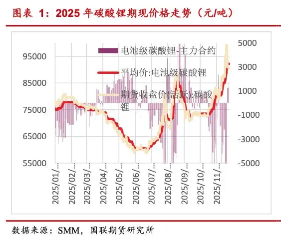 直到2025年下半年,澳洲矿山减产、云母矿退出、国内供给收缩,上游资源的特点就是紧涨松砸;同时,储能电芯出货 240GWh同比增长90%,几乎全部采用磷酸铁锂电池,以及新能源汽车的增长又把需求拉了上去,截至12月17日国内碳酸锂期货涨幅超过7%,最高至108600元/吨。