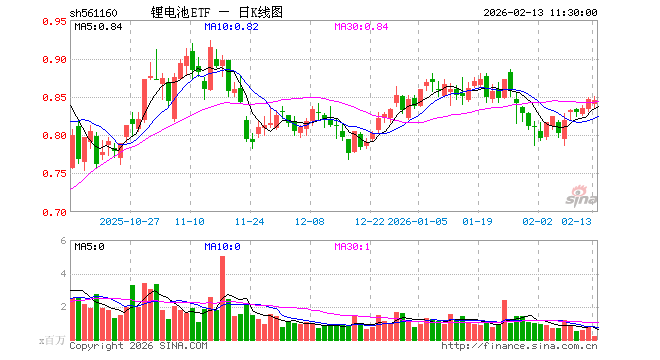 2月13日,截止午间收盘,锂电池ETF(561160)跌0.24%,报0.845元,成交额2023.79万元。锂电池ETF(561160)重仓股方面,宁德时代截止午盘跌2.07%,阳光电源跌3.54%,三花智控涨1.50%,亿纬锂能跌1.20%,天赐材料涨3.21%,先导智能涨0.20%,格林美跌2.70%,国轩高科涨0.27%,多氟多涨2.34%,欣旺达涨0.12%。